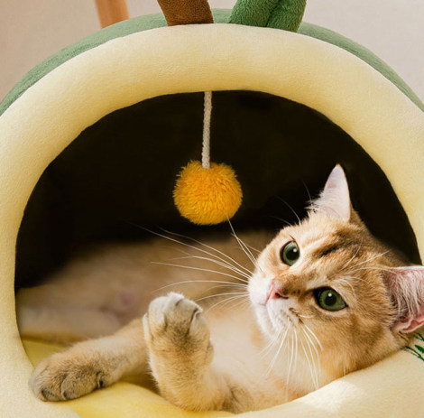Allhomwie Pet furniture cat nest four seasons universal semi-enclosed kitten avocado nest with toys to relieve boredom pet furniture