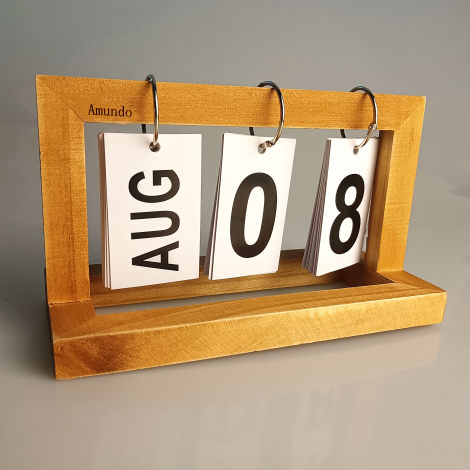 Amundo Calendar stands Desk Calendar Creative Wooden Page Turning Calendar Wooden Perpetual Calendar Desktop Ornament